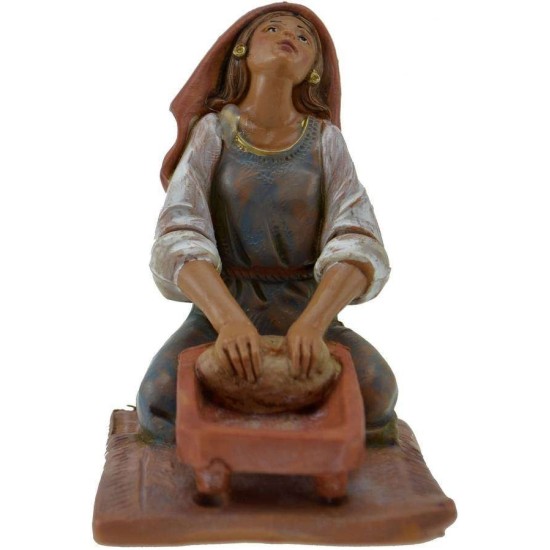 Donna in ginocchio che impasta nella maiella, serie Fontanini 12 cm.