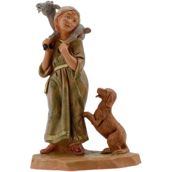 Young pastor with dog and goat on the shoulders of the Fontanini, series 12 cm.