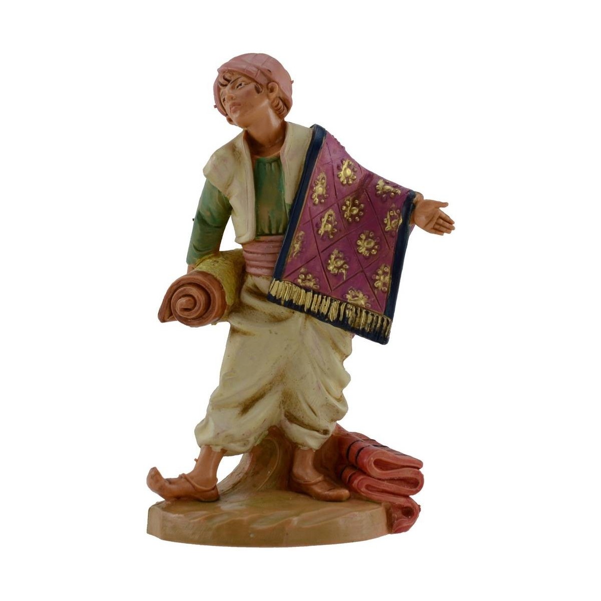 Seller of Oriental carpet series 12 cm Fontanini painted by hand. The statues of the traditional Fontanini presepe have expressive and well-refinished faces in the details.
