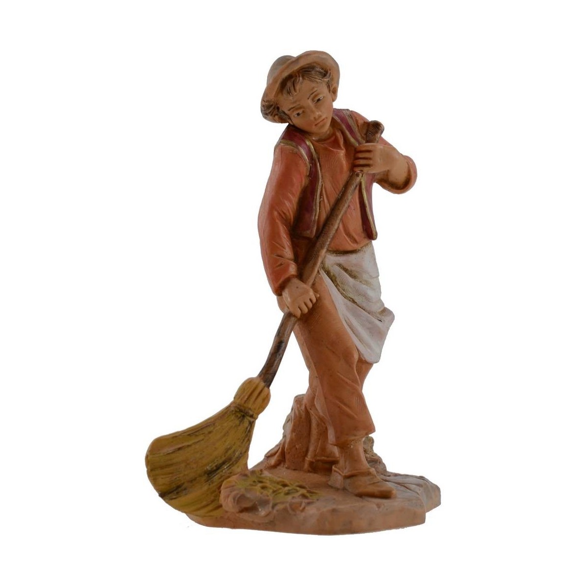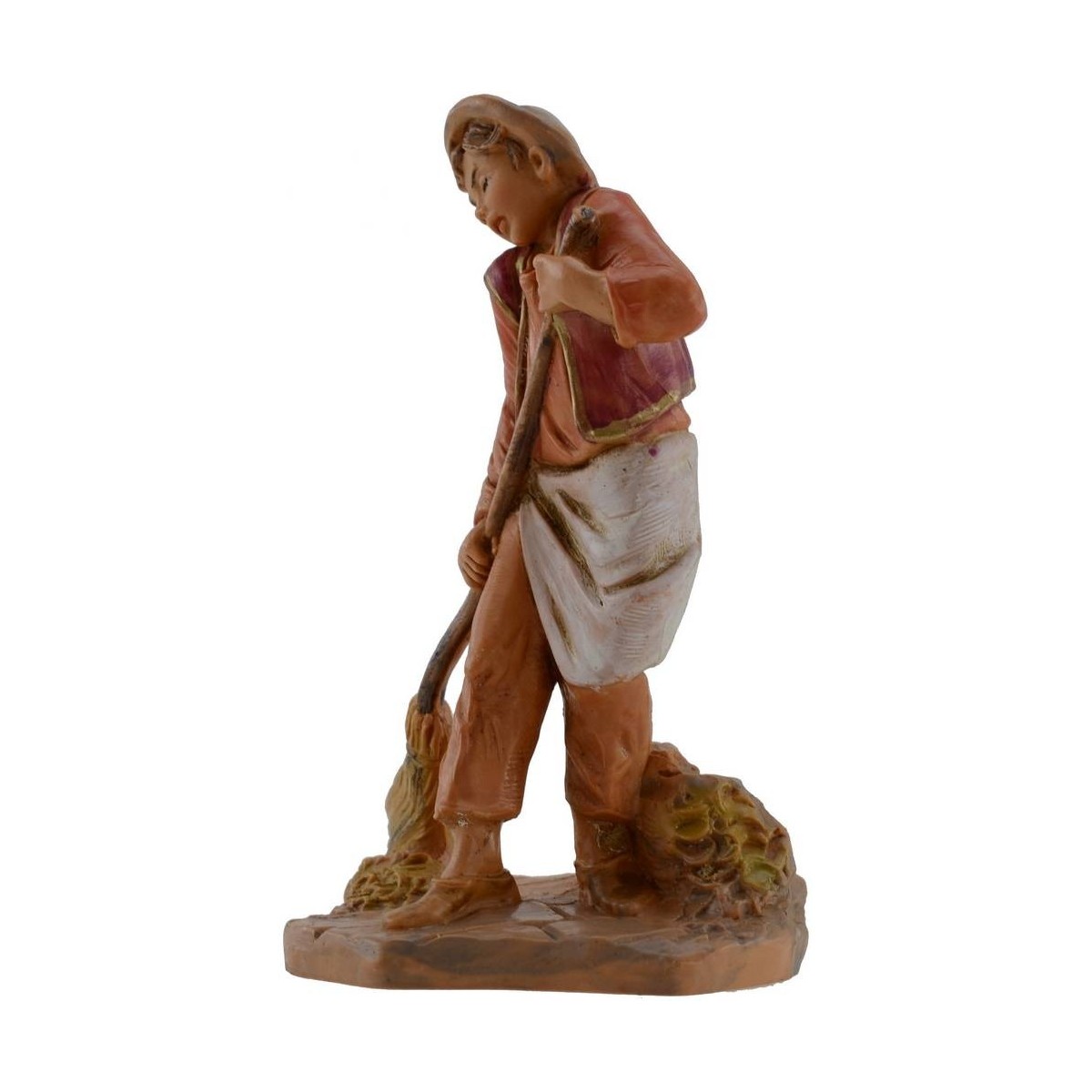 Boy with hat that sweeps series 12 cm Fontanini painted by hand. The statues of the traditional Fontanini presepe have expressive and well-refinished faces in the details.