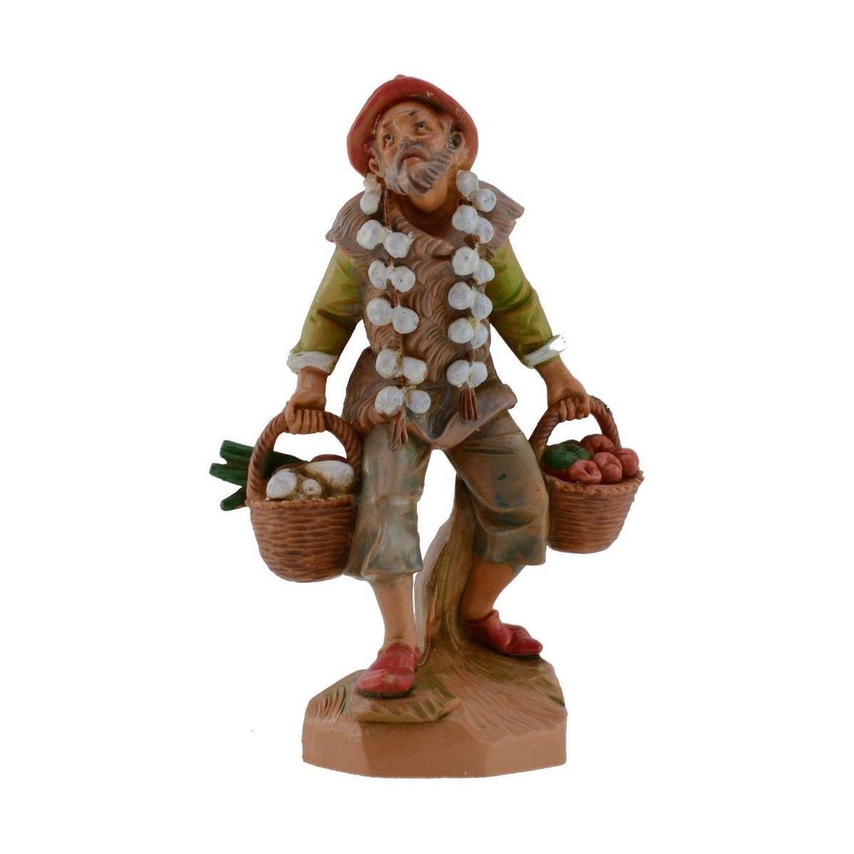 Old with painted vegetable cesti 12 cm Fontanini painted by hand. The statues of the traditional Fontanini presepe have expressive and well-refinished faces in the details.