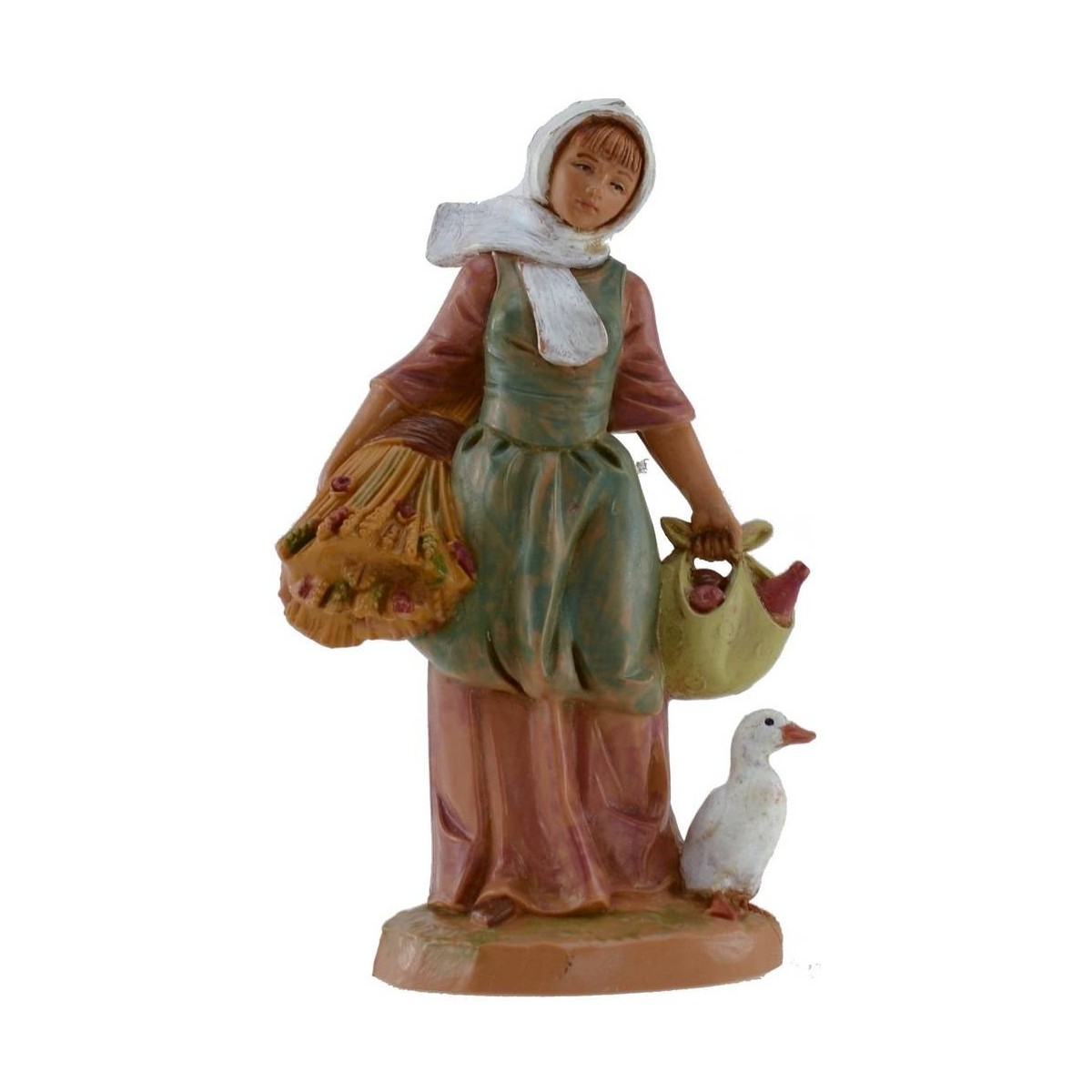 Farmer at work with beam, fageight and goose series 12 cm Fontanini painted by hand. The statues of the traditional Fontanini presepe have expressive and well-refinished faces in the details.
