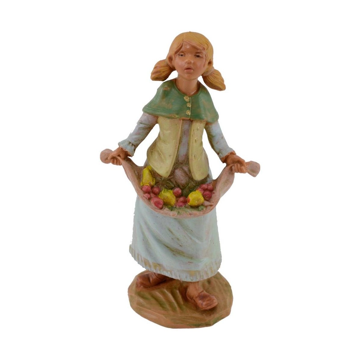 Girl with fruit stole 12 cm Fontanini series hand painted. The statues of the traditional Fontanini nativity scene have expressive faces and well finished in detail.