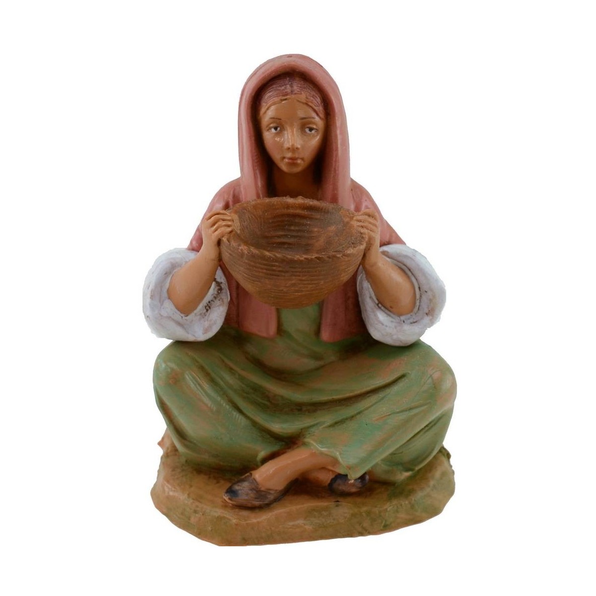 Oriental woman sitting with basket series 12 cm Fontanini hand painted. The statues of the traditional Fontanini nativity scene have expressive faces and well finished in detail.