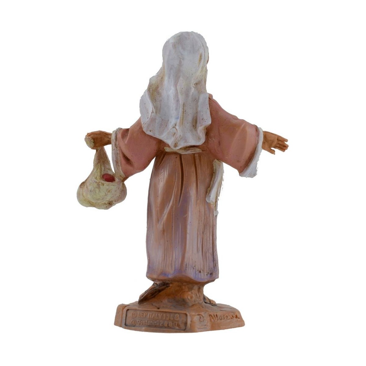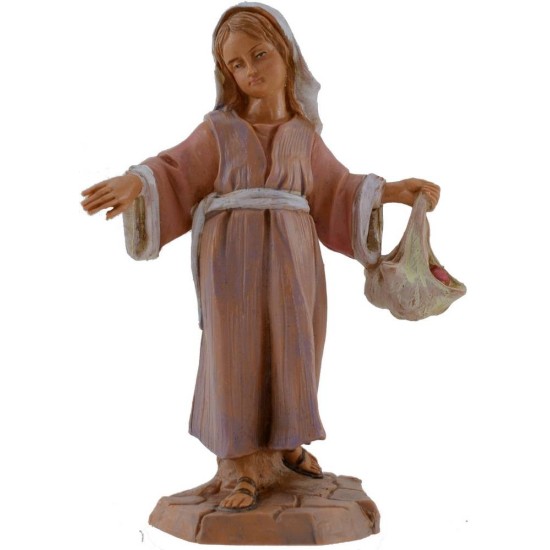 Girl with bundle in her hand series 12 cm Fontanini hand painted. The statues of the traditional Fontanini nativity scene have expressive faces and well finished in detail.