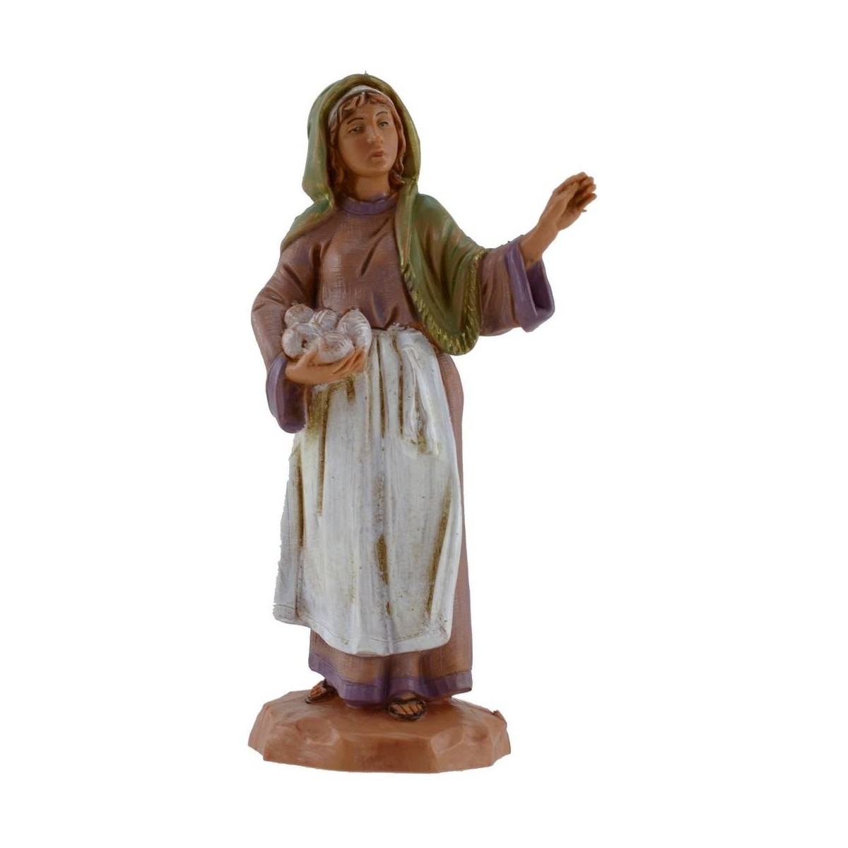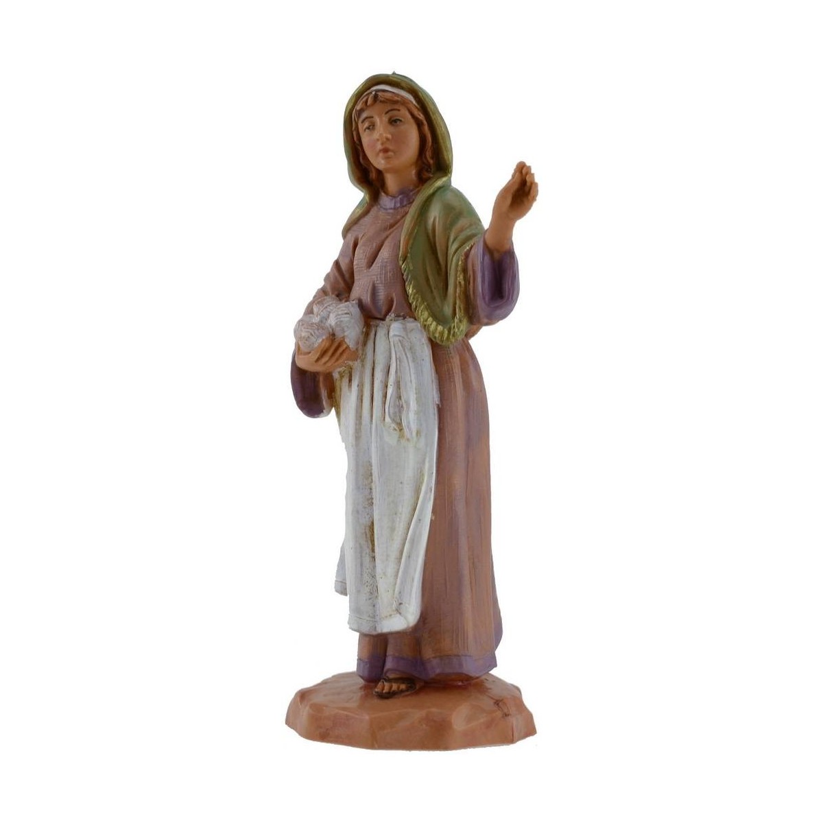 Oriental woman with balls of yarn in hand, 12 cm Fontanini series, hand painted. The statues of the traditional Fontanini nativity scene have expressive faces and well finished in detail.