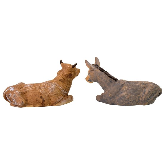 Set bue e asino consigliato per Natività di altezza 12 cm, realizzato in pvc serie lux.