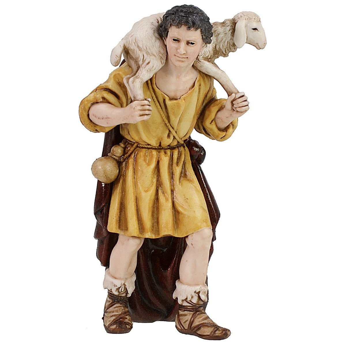 Shepherd with lamb on shoulders 13 cm Landi Moranduzzo, the aforementioned series is characterized by statues with well-finished details, with expressive faces and the use of very realistic colours.
