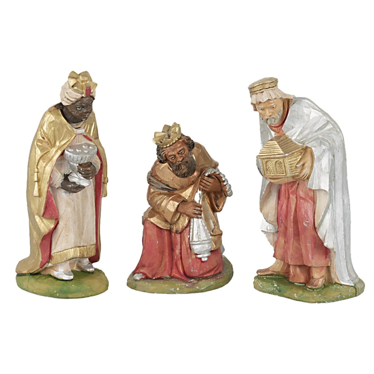 Set of 3 Wise Men bringing gifts, 15 cm series. The statues are made of PVC in Italy.
