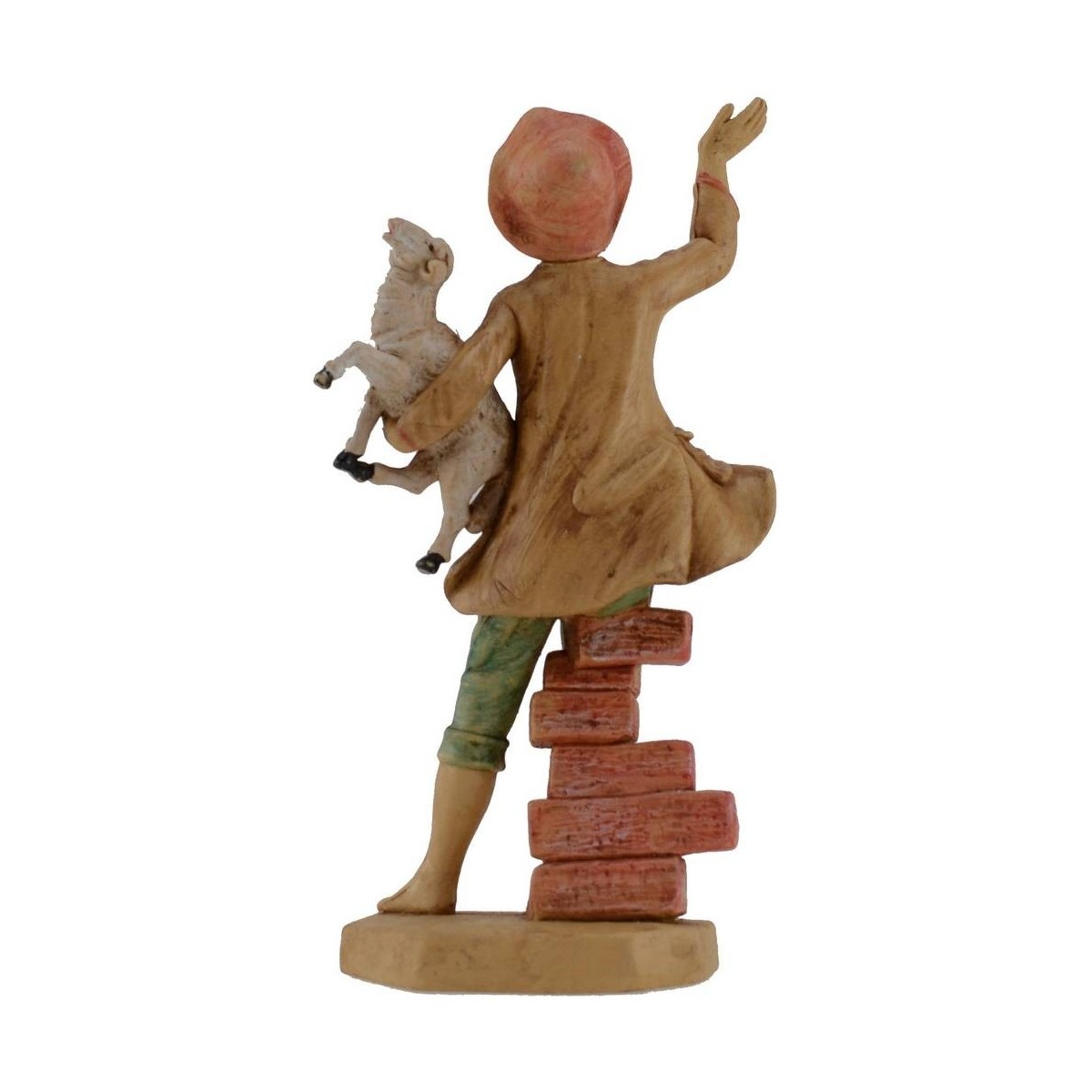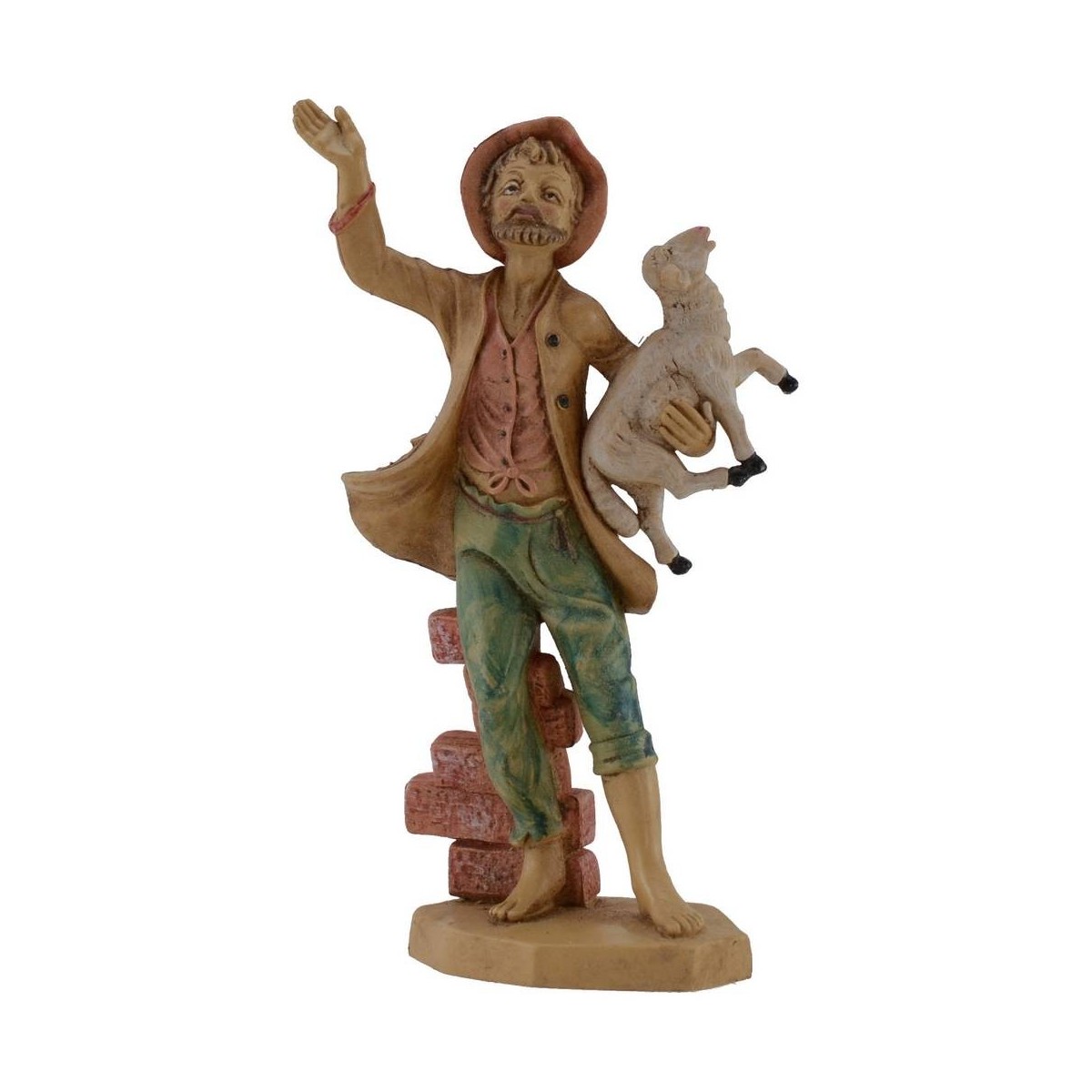 Man rested at the muretto with hat and lamb in arm series lux cm 16, statue for presepe in pvc.