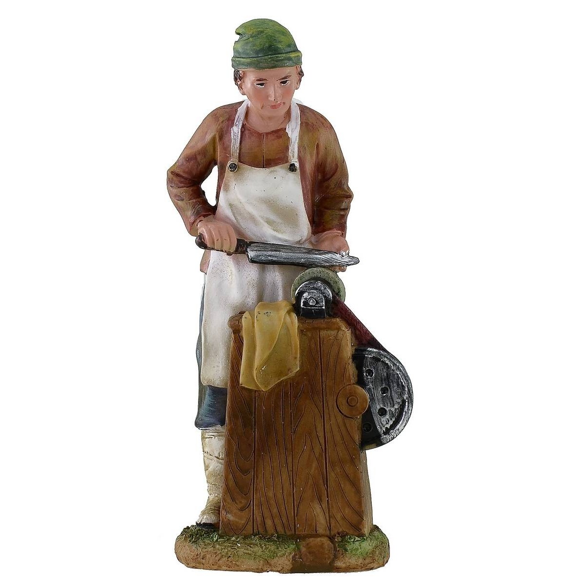 Man sharpening resin knives, height 20 cm.