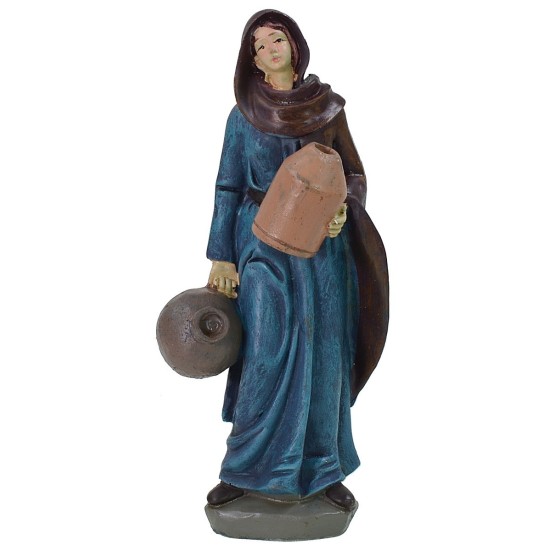 Resin woman with amphorae 20 cm dressed in a blue dress and a long veil.