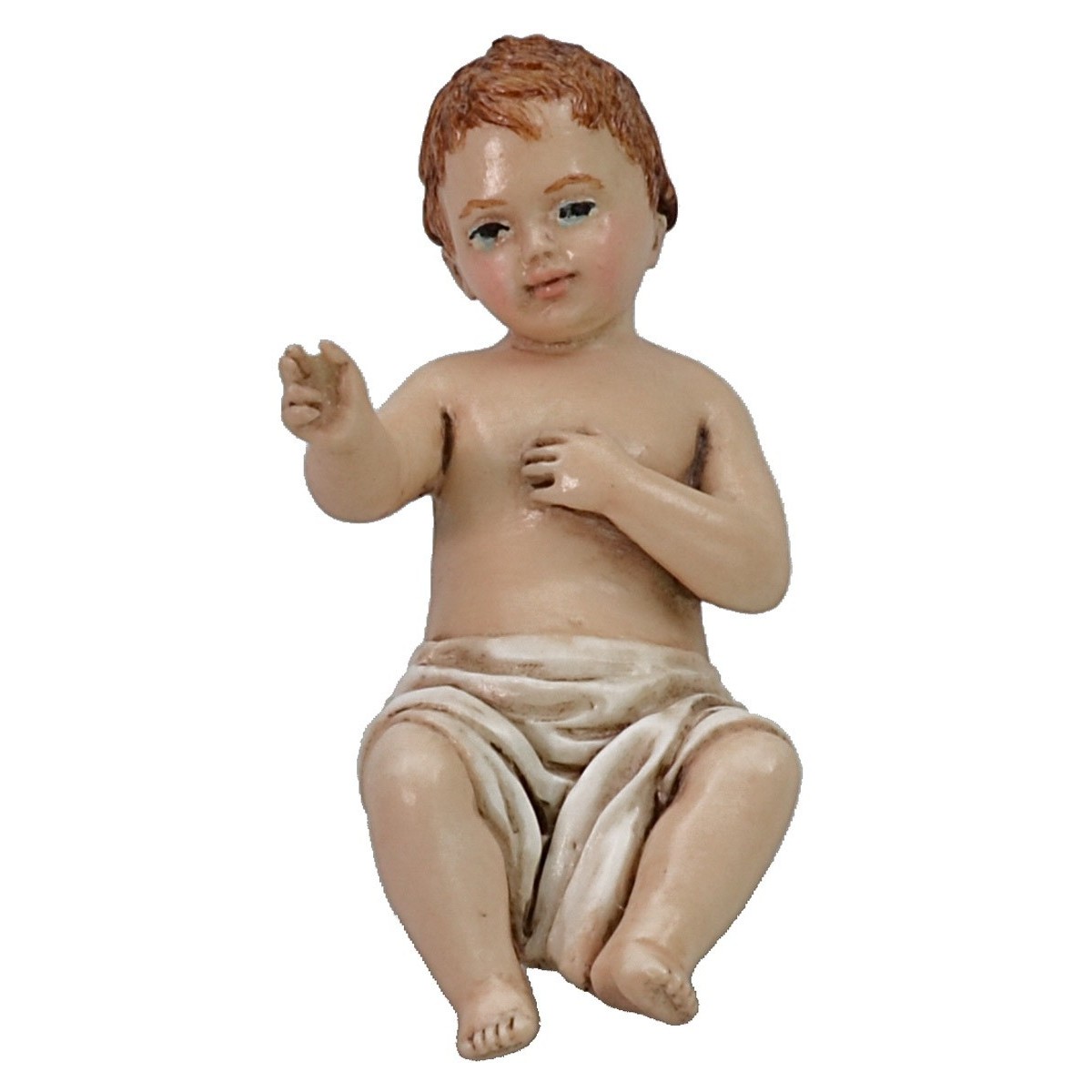 Resin Holy Family Landi Moranduzzo series 18 cm, composed of Saint Joseph, kneeling Madonna and Child in the separate cradle; statues wisely sculpted by the skilled hands of the homonymous sculptor Martino Landi. The whole series is hand painted and entirely produced in Italy. This series of nativity statues is known for its harmonious and expressive lines, for the delicate shades of color that contribute to making the nativity figures even more realistic.