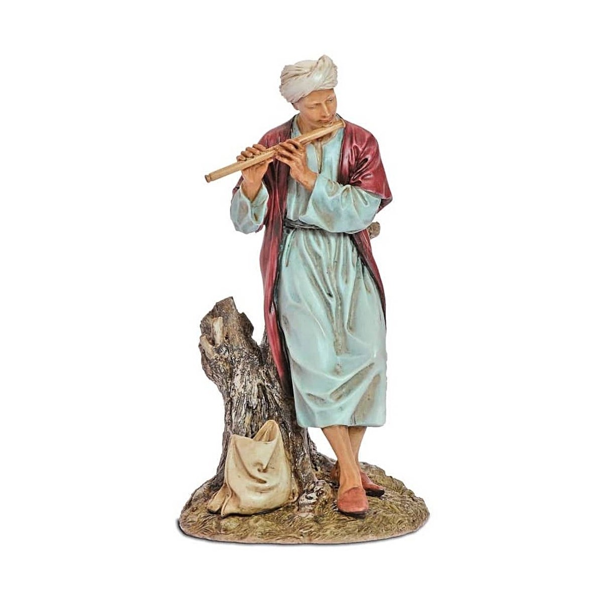 Oriental flute player in resin series Landi Moranduzzo 20 cm ; wisely sculpted by the able-bodied hands of the namesake sculptor Martino Landi. The whole series is hand-painted and entirely produced in Italy. This set of statues for preseps is known for harmonious and expressive lines, for the delicate shades of color that contribute to making the figures for even more realistic preseps.