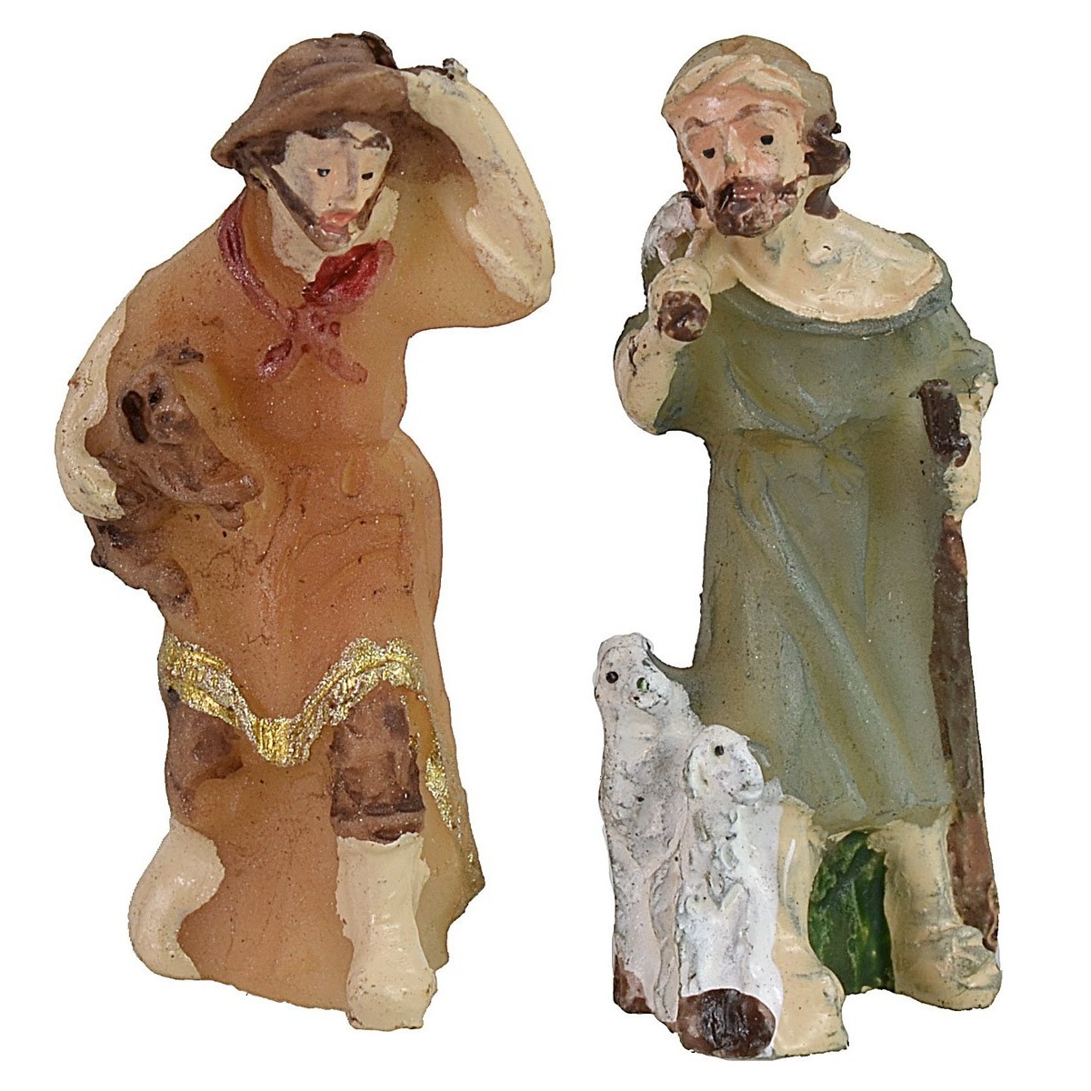 Set of 4 resin figures 3.5 cm composed of: shepherd with sheep, shepherd with dog, woman with amphorae, pregnant woman with basket.