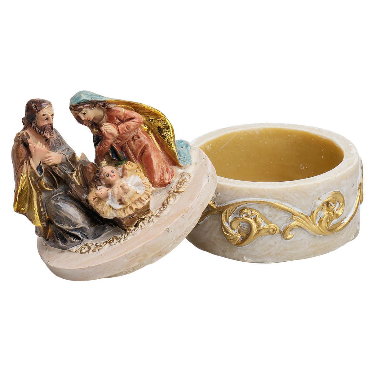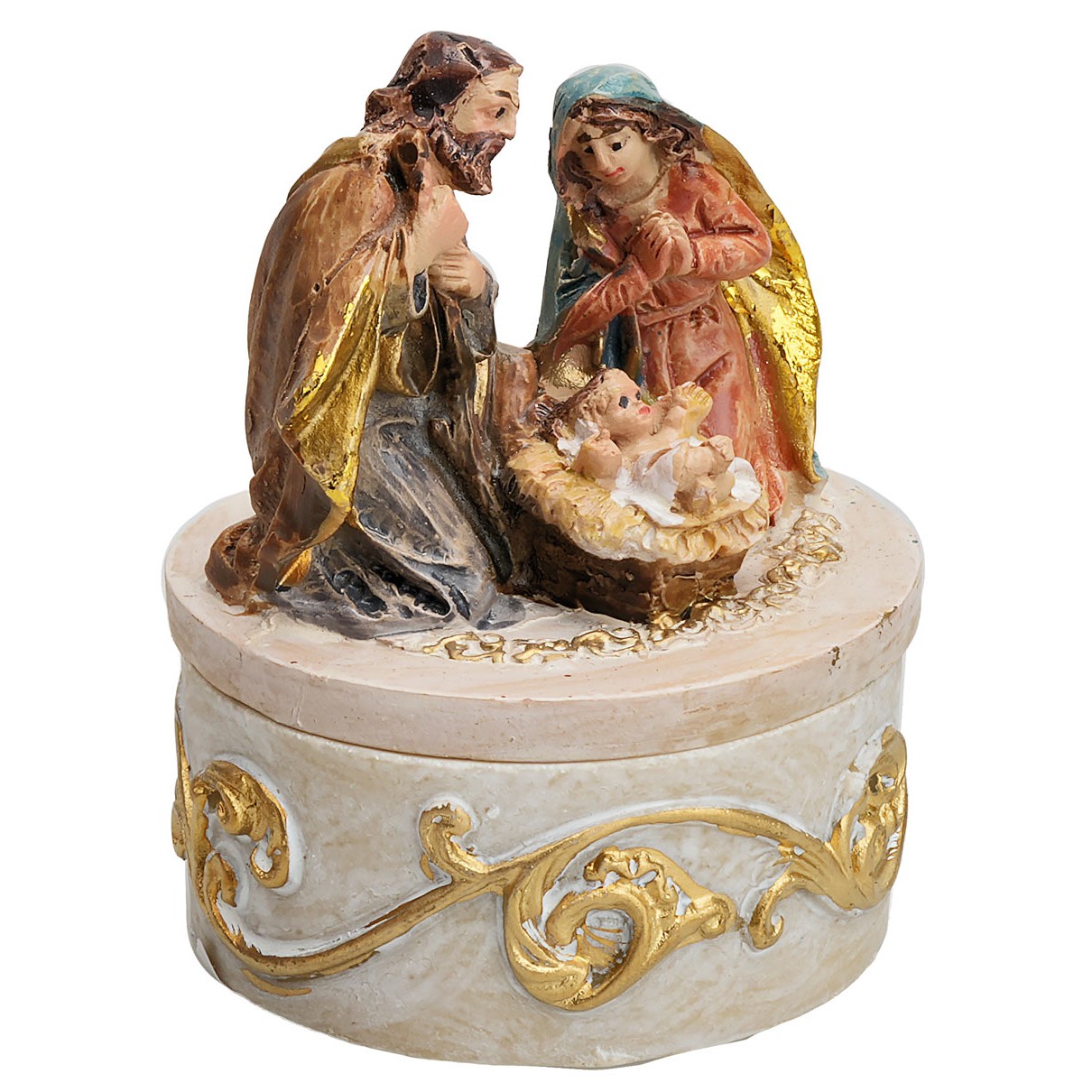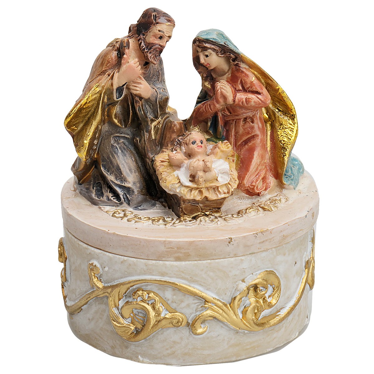 Box with Kneeling Nativity in resin series 4 cm.