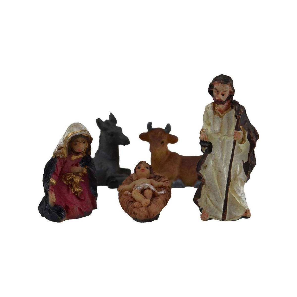 Set of 11 resin subjects 3 cm high: St. Joseph, Mary, Jesus, ox, donkey, angel. Three Magi, shepherd and sheep.