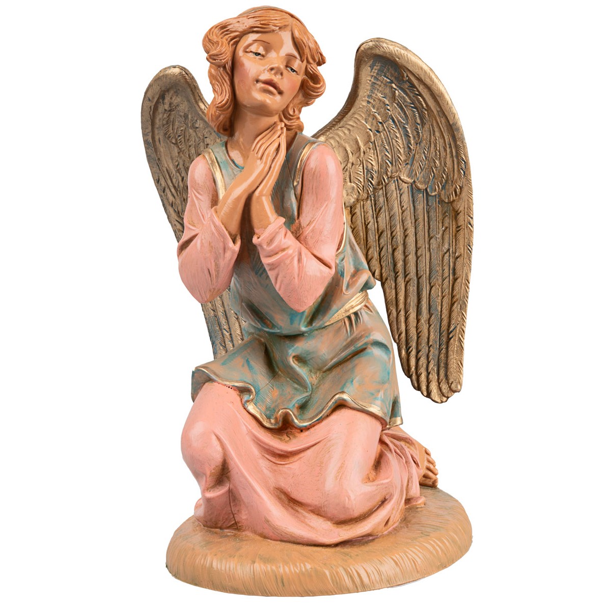 Angelo kneels 30 cm Fontanini series, hand-painted and suitable for outdoor environments, too. Statue of the traditional Fontanini presepe with an expressive face and well refinished in detail.