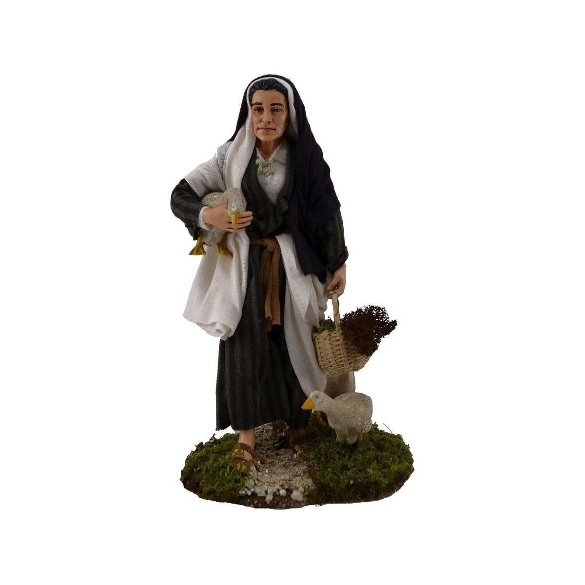 Old woman with geese in resin dressed in fabric (the color of the clothes may vary from the photograph)