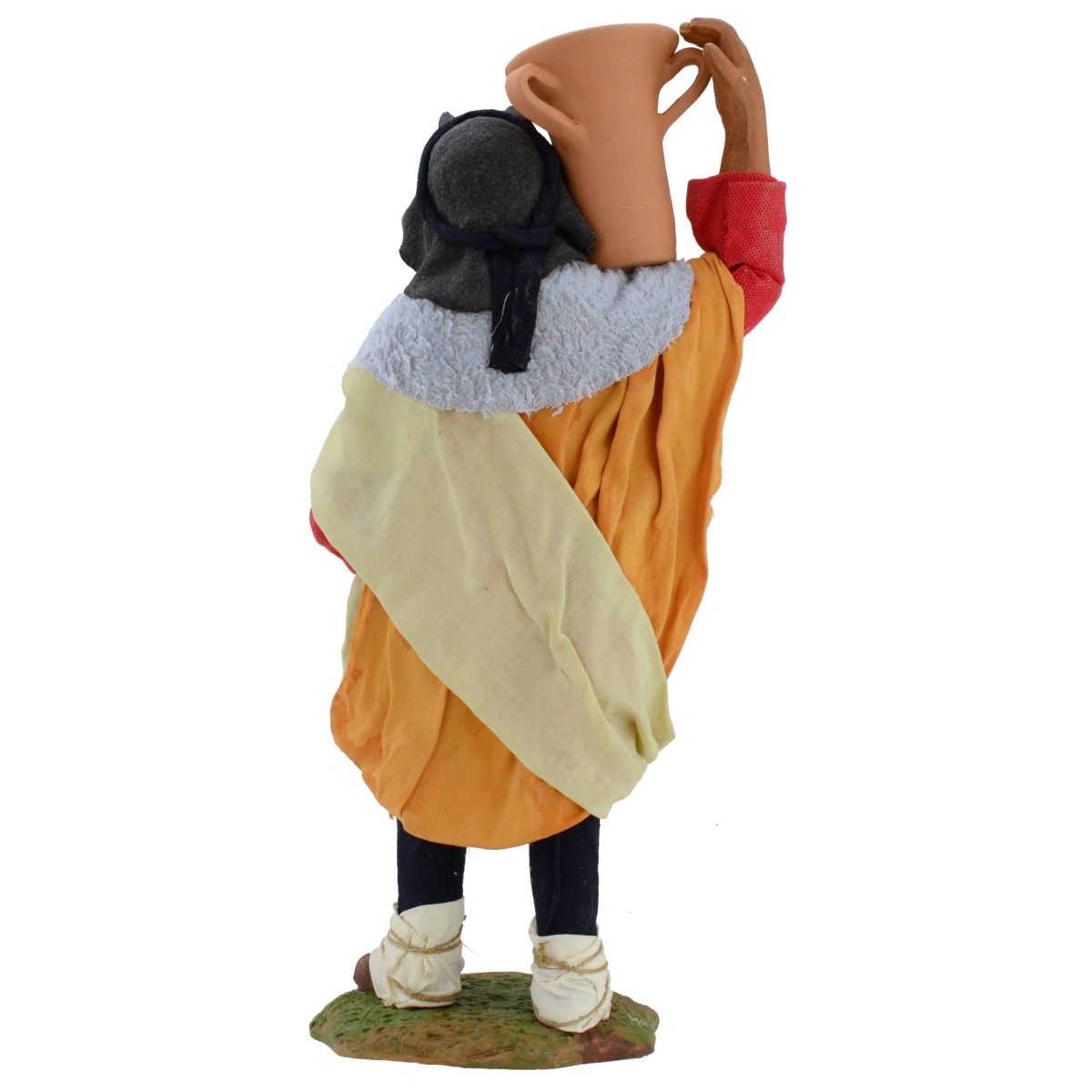 Pastore con anfora a tre manici in spalla. La statua è in terracotta ben rifinita in tutti i minimi particolari con abiti in tessuto indurito, essendo realizzata completamente a mano potrebbero variare leggermente i colori dei vestiti e del viso rispetto alla foto. Prodotto artigianale realizzato dai migliori artisti italiani.