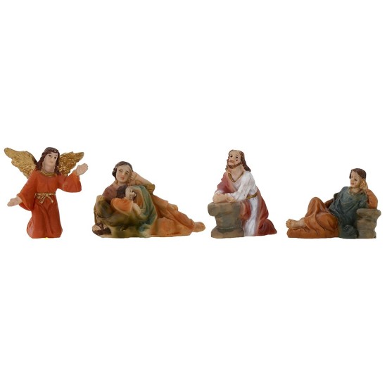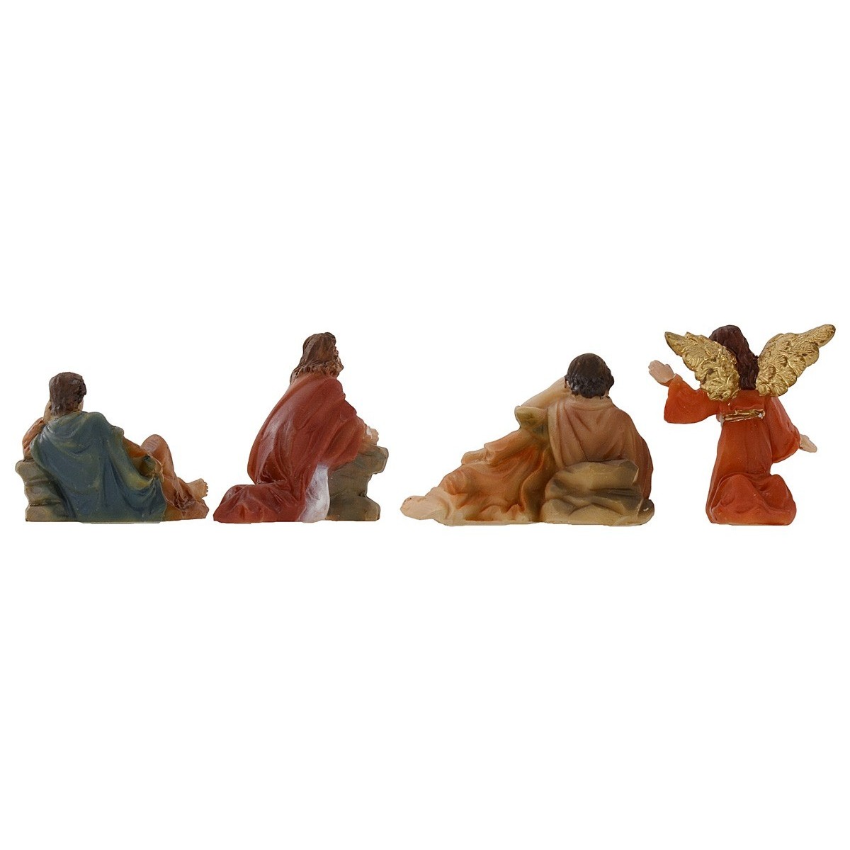 Set of 4 Pasquale statues for the depiction of Jesus suffering in the garden of the Getseman, intent on praying in despair, shortly before he was betrayed by Judas and arrested. They complete the scenography the 3 apostles and an angel. Episode of the life of Jesus. The statues of the same series have expressive and well-refinished faces in the details and are realized entirely in resin. The product is ideal for the creation of Pasquale compositions such as Diorami and Presepi.