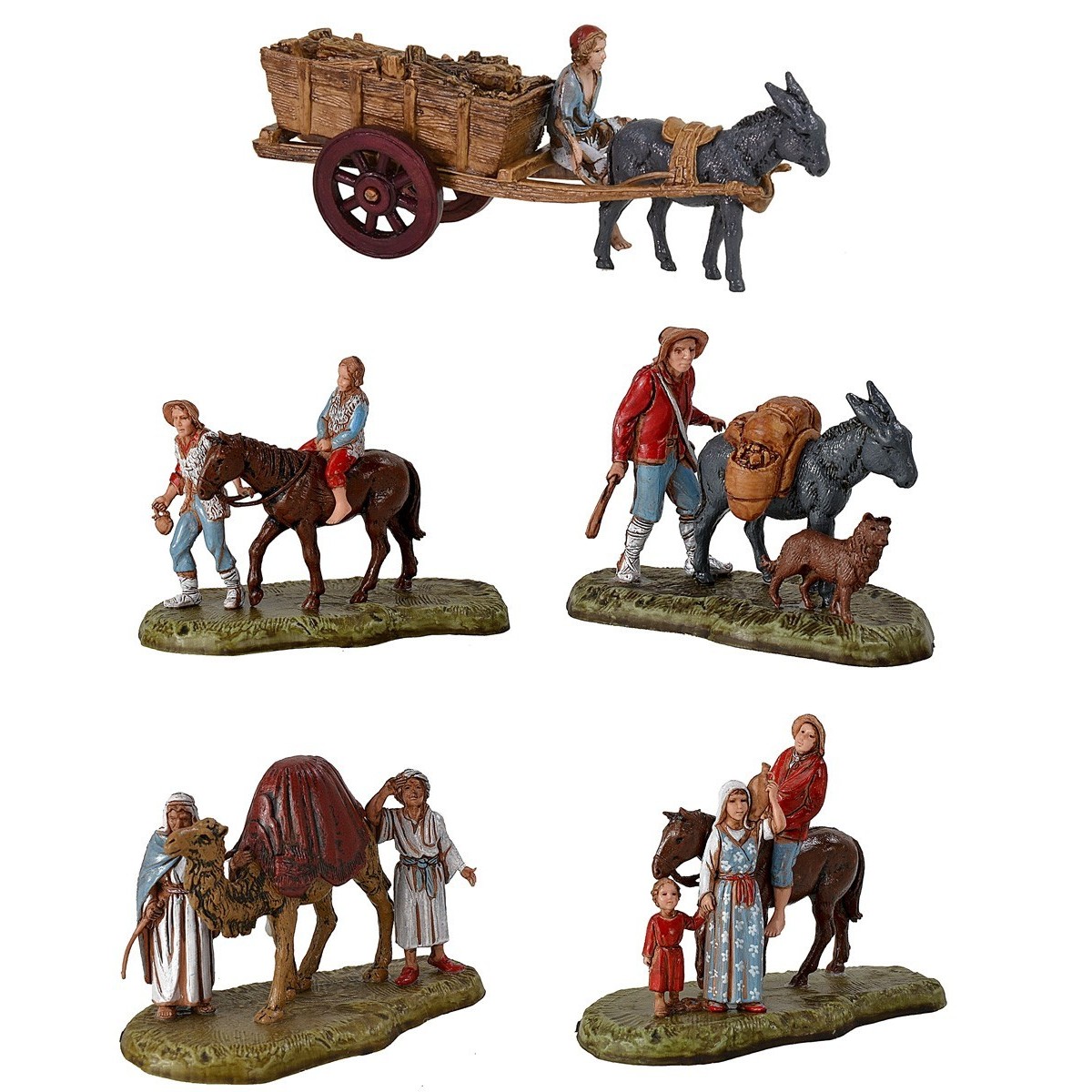 Set of 5 scenes 6 cm Landi Moranduzzo composed of: man with cart, camel drivers with camel, wayfarer with donkey, man with boy on horseback, man on horseback and woman with girl. We specify that the 6 cm series has a real height of about 5.5 cm.