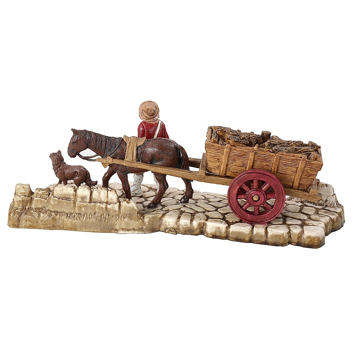 Scena carretto di legna trainato da un asino con conducente a piedi accompagnato dal cane, serie 6 cm Landi Moranduzzo.
