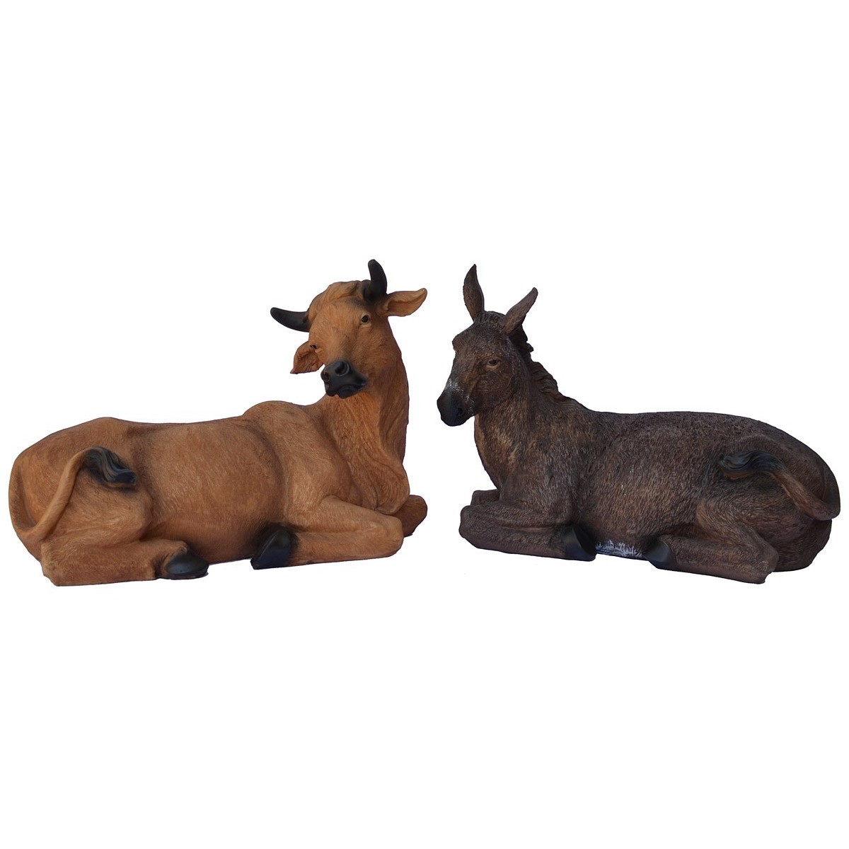 Set 11 personaggi serie 60cm in resina dipinta a mano, le statue sono così composte: San Giuseppe con bastone e lanterna , Maria inginocchiata, Gesù bambino mobile che può esser o meno posizionato sulla culla, l'Angelo, bue e asino, i tre Re Magi ed un pastore con pecora.