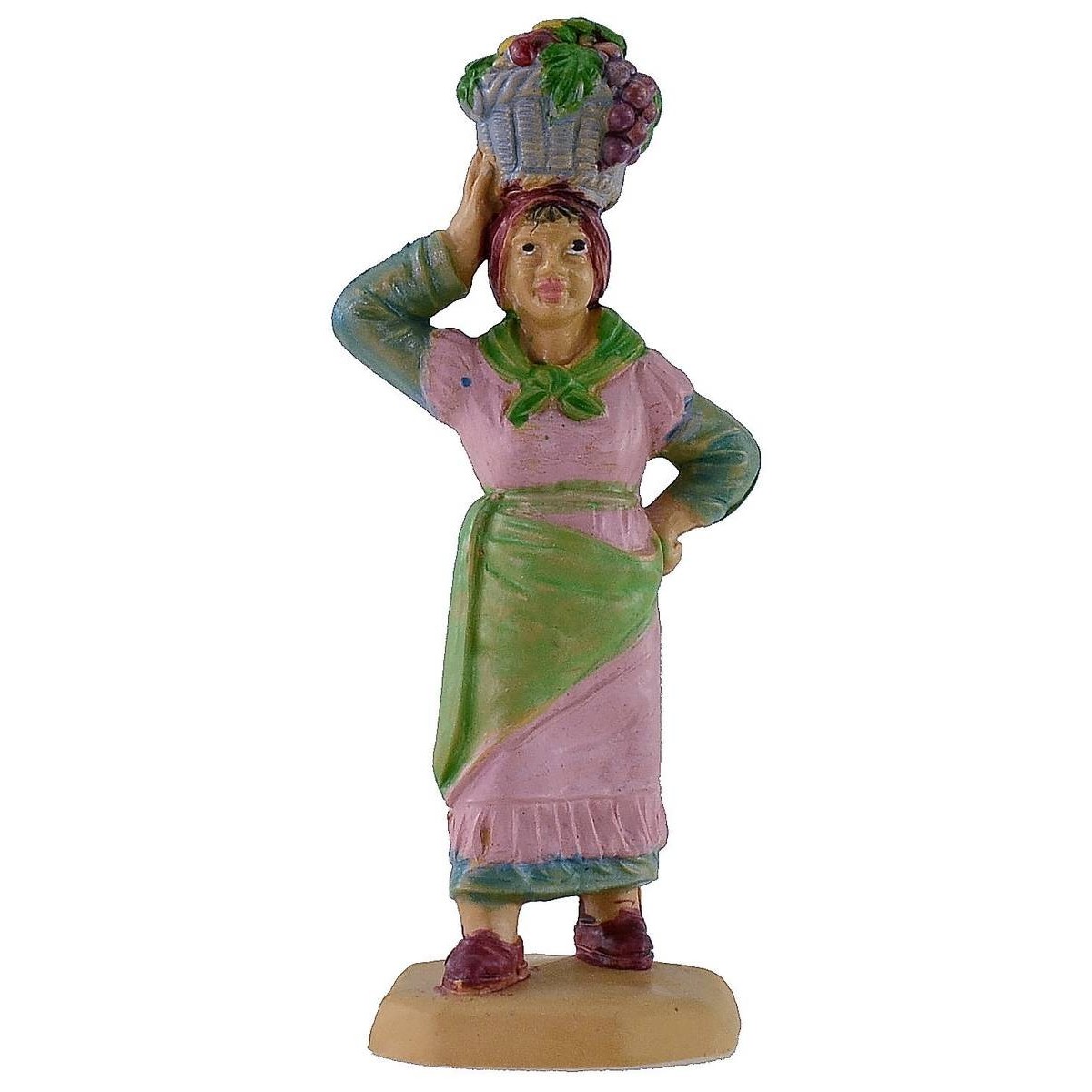 Woman with fruit basket on her head lux series 8 cm, statue for nativity scene in pvc.