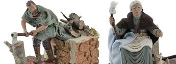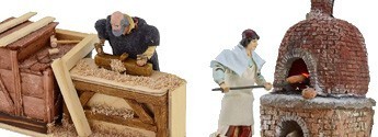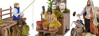 The moving statues for nativity scenes are figures that represent the typical trades of the time; they are made of various materials, including terracotta, resin, or plastic, and are available in different heights from 3.5 cm to 30 cm.