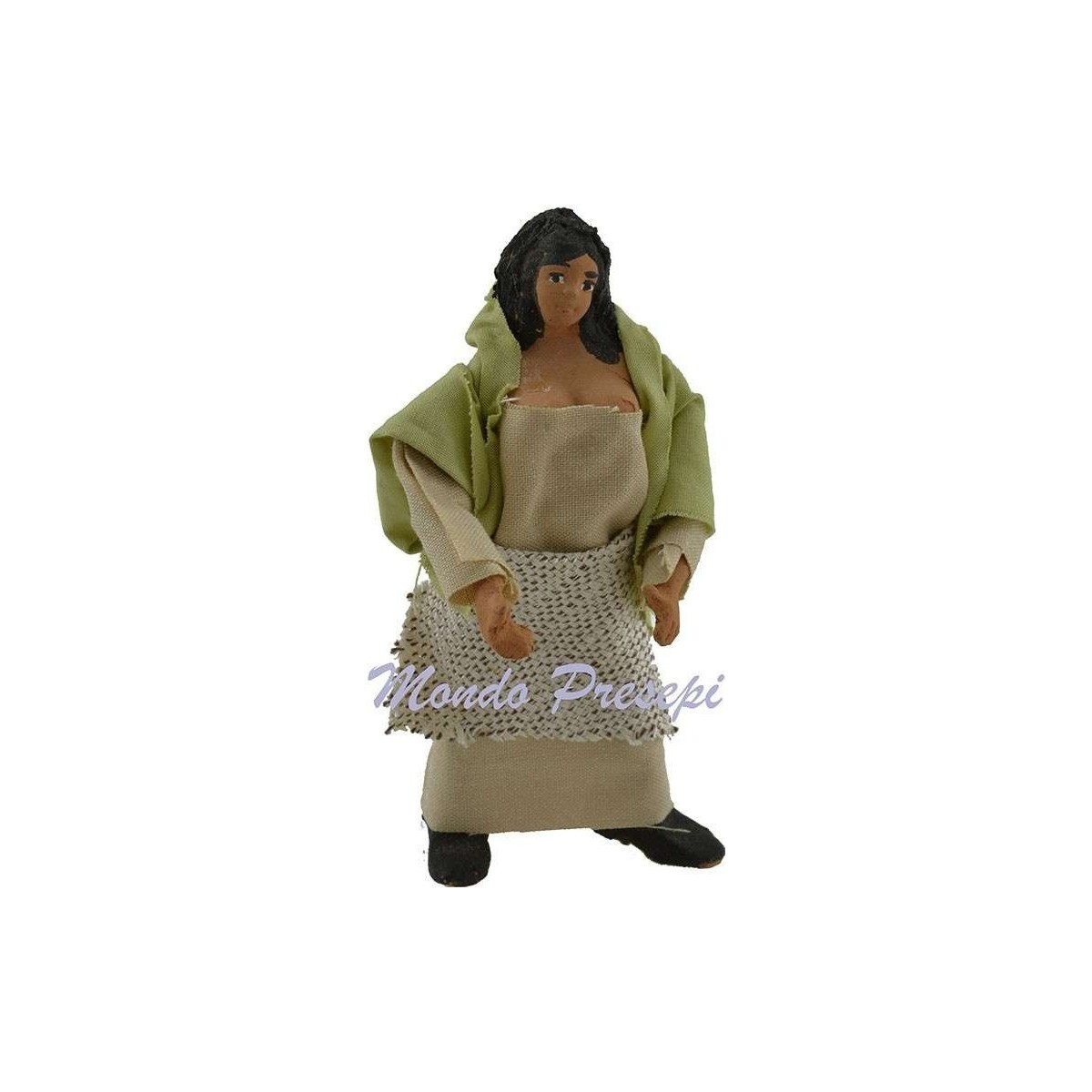 Donna in terracotta snodato serie 12 cm vestito con abiti in tessuto. La statua è nella posizione in piedi con il busto e braccia snodate, risulta ideale per la realizzazione di movimenti per il presepe fai da te o per essere utilizzata fissa e riposta nella posizione desiderata. L'articolo è realizzato completamente a mano, pertanto, potrebbero variare i colori rispetto alla foto.