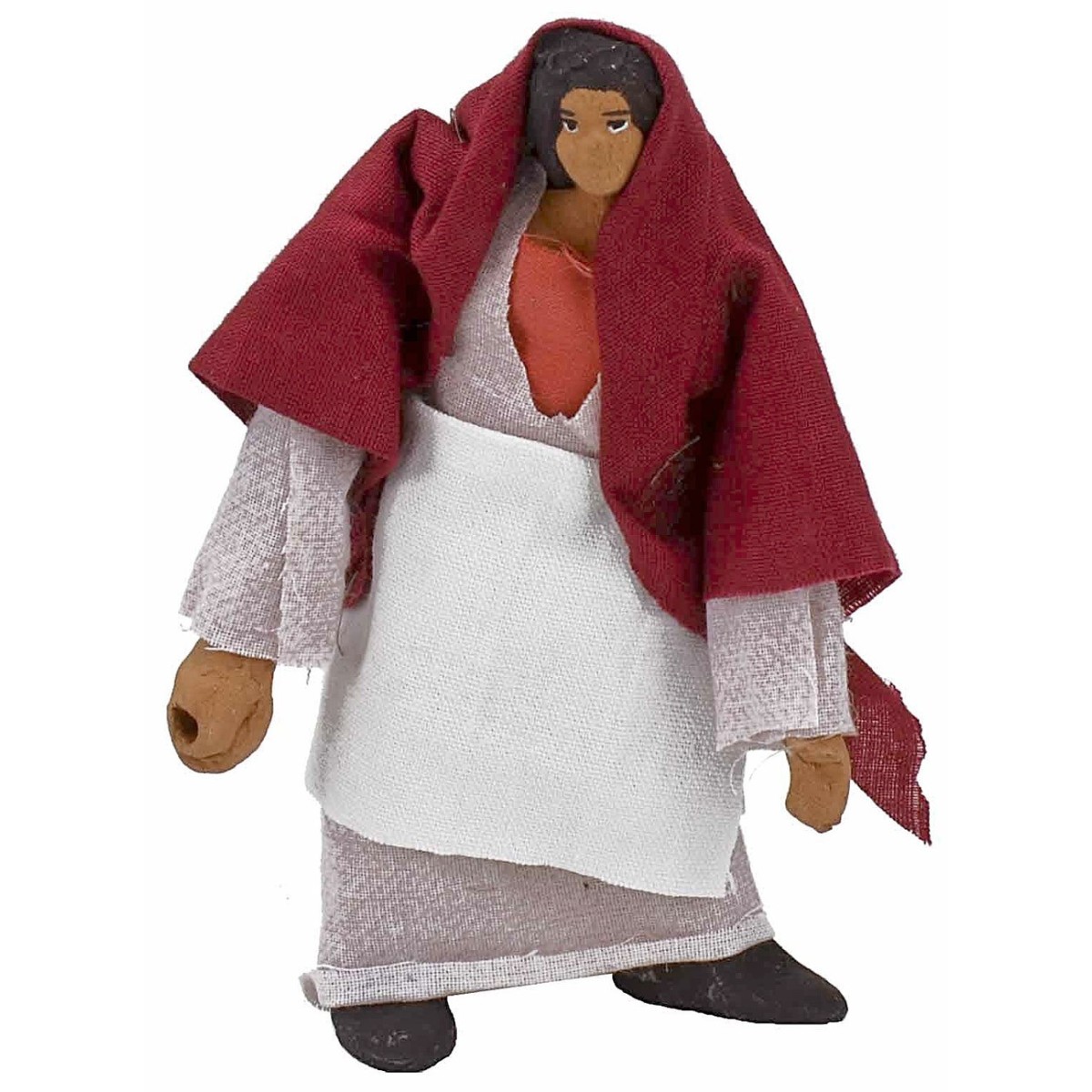 Donna in terracotta snodata serie 11 cm vestito con abiti in tessuto. La statua è nella posizione in piedi con il busto snodato e la mano destra forata, risulta ideale per la realizzazione di movimenti come: la massaia che batte i panni, la polentaia che mescola. la donna che gira lo spiedo ecc... per il presepe fai da te o per essere utilizzata fissa e riposta nella posizione desiderata. L'articolo è realizzato completamente a mano, pertanto, potrebbero variare i colori rispetto alla foto.
