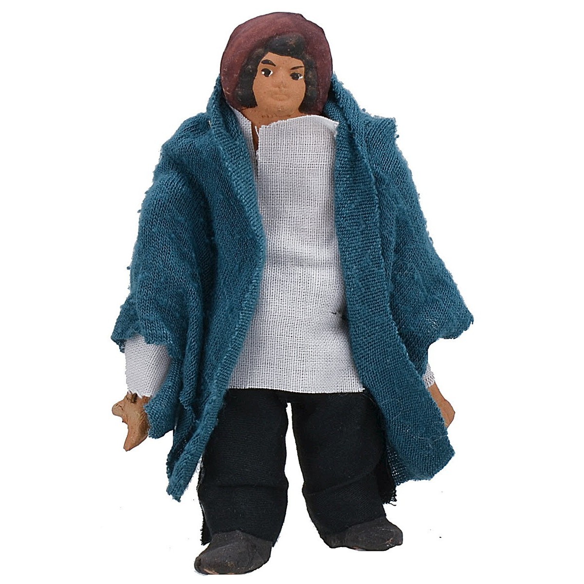 Uomo in terracotta snodato serie 10 cm vestito con abiti in tessuto. La statua è nella posizione in piedi con il busto e le braccia snodate, risulta ideale per la realizzazione di movimenti per il presepe fai da te o  per essere utilizzata fissa e riposta nella posizione desiderata. L'articolo è realizzato completamente a mano, pertanto, potrebbero variare i colori rispetto alla foto.