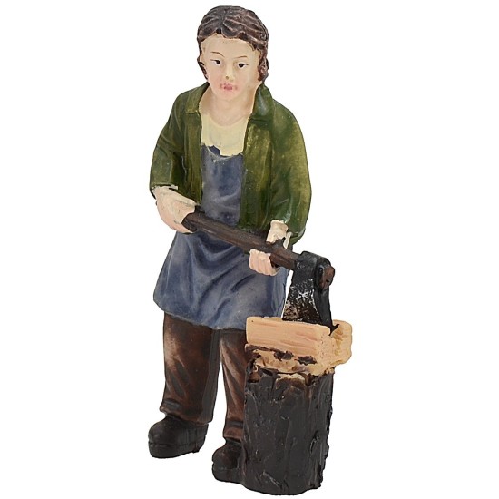 Man with an ax splitting a wooden log, the resin figurine is well detailed.