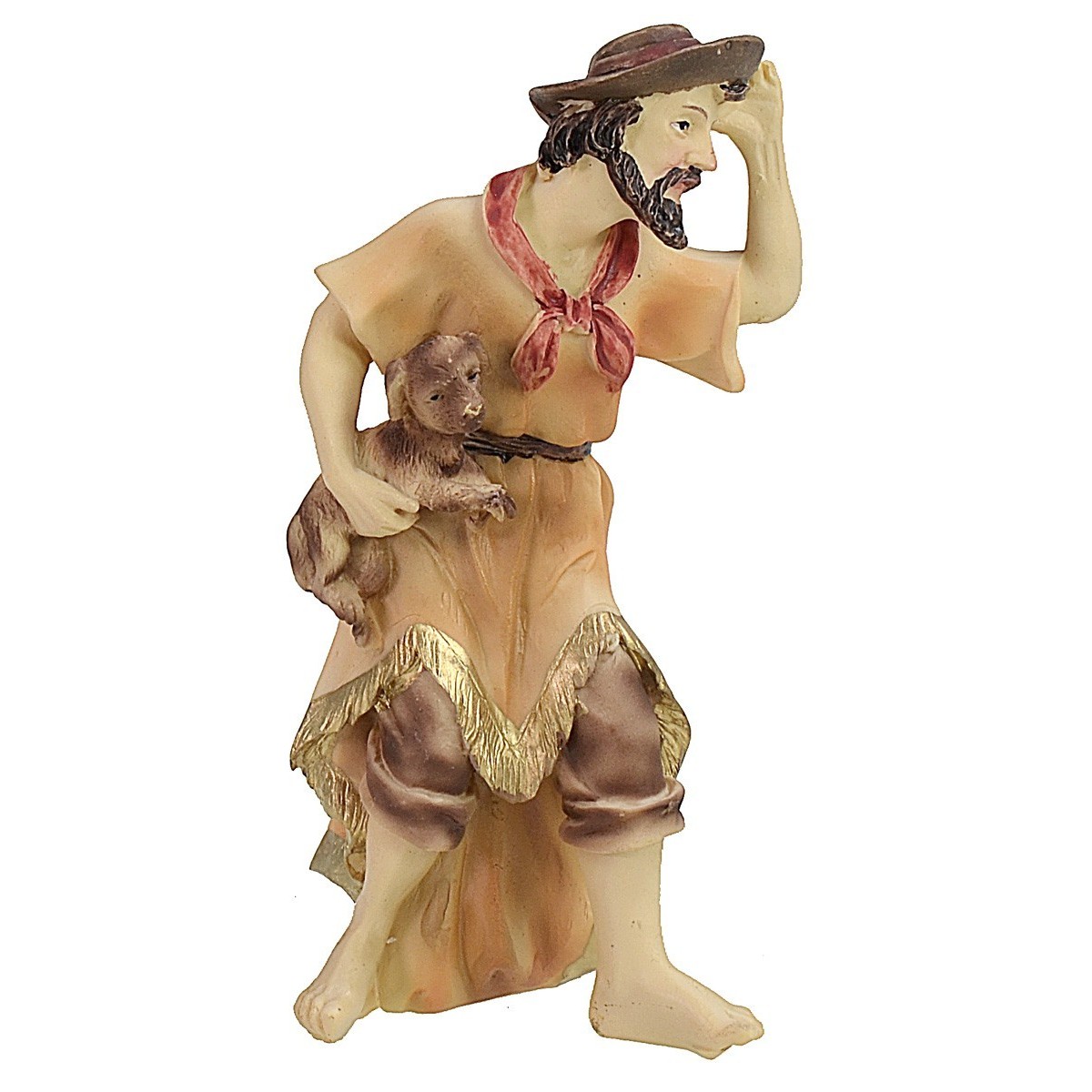 Shepherd with puppy dog in his arms, the resin figurine is well detailed.