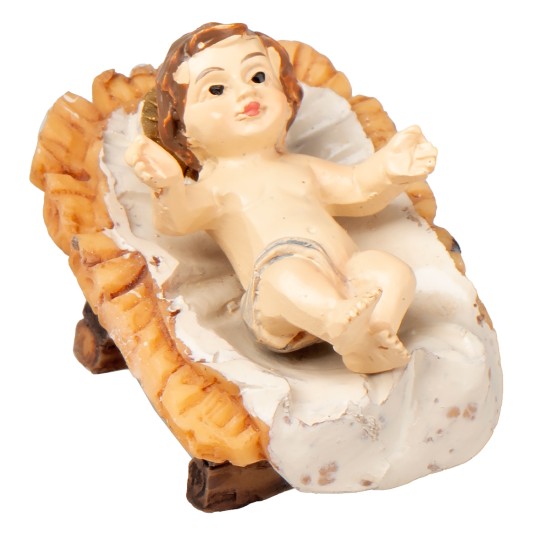 Baby Jesus in a resin cradle, 9-10 cm series, with removable body.