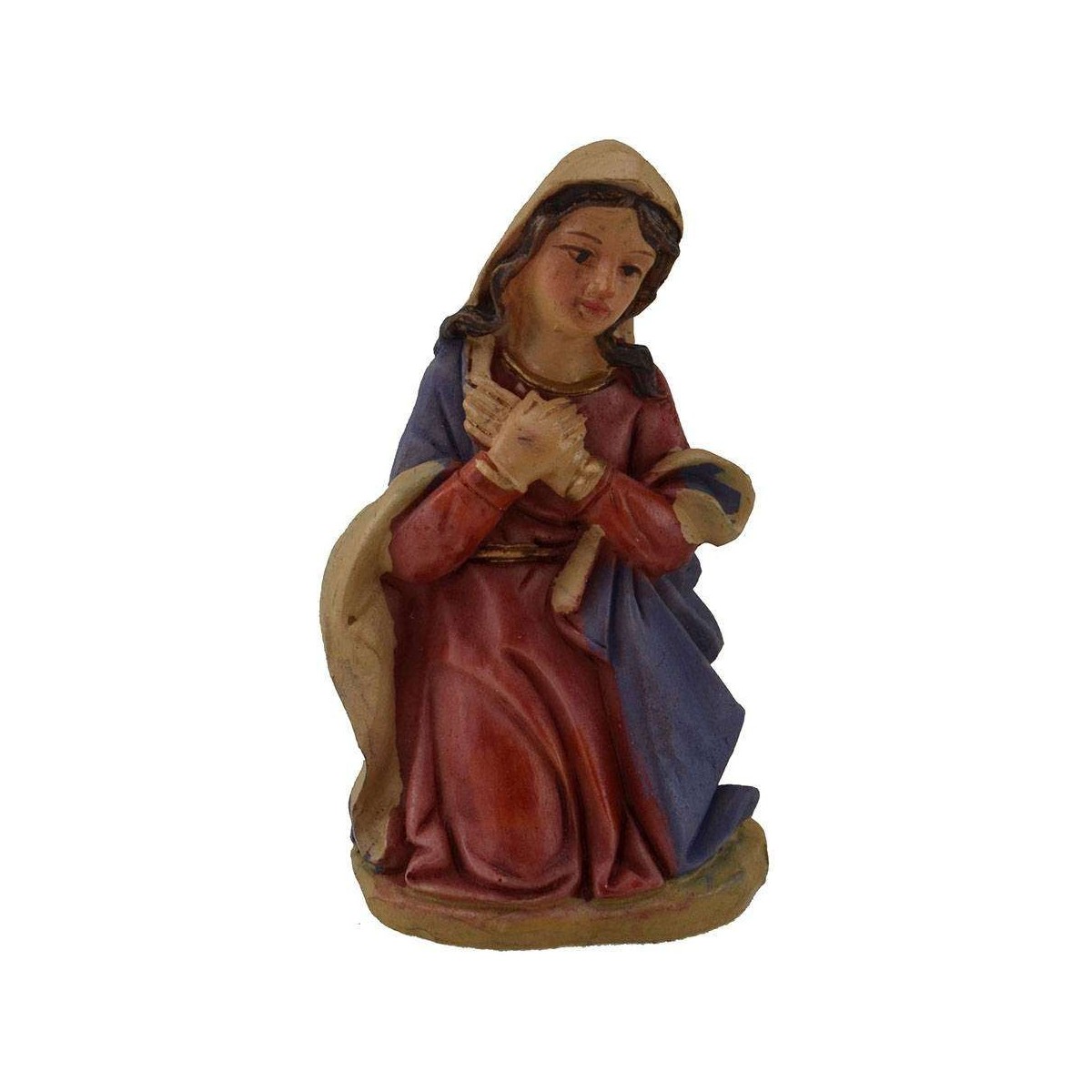 Resin nativity set 5 subjects: St. Joseph, Mary, Baby Child in the cradle, ox and donkey.