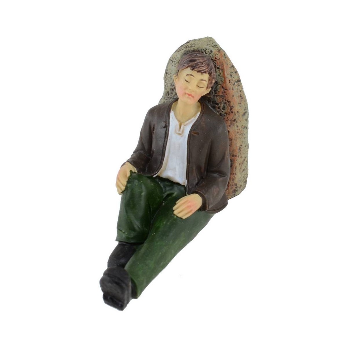 Dormiente seduto poggiato ad una pietra serie 8 cm in resina