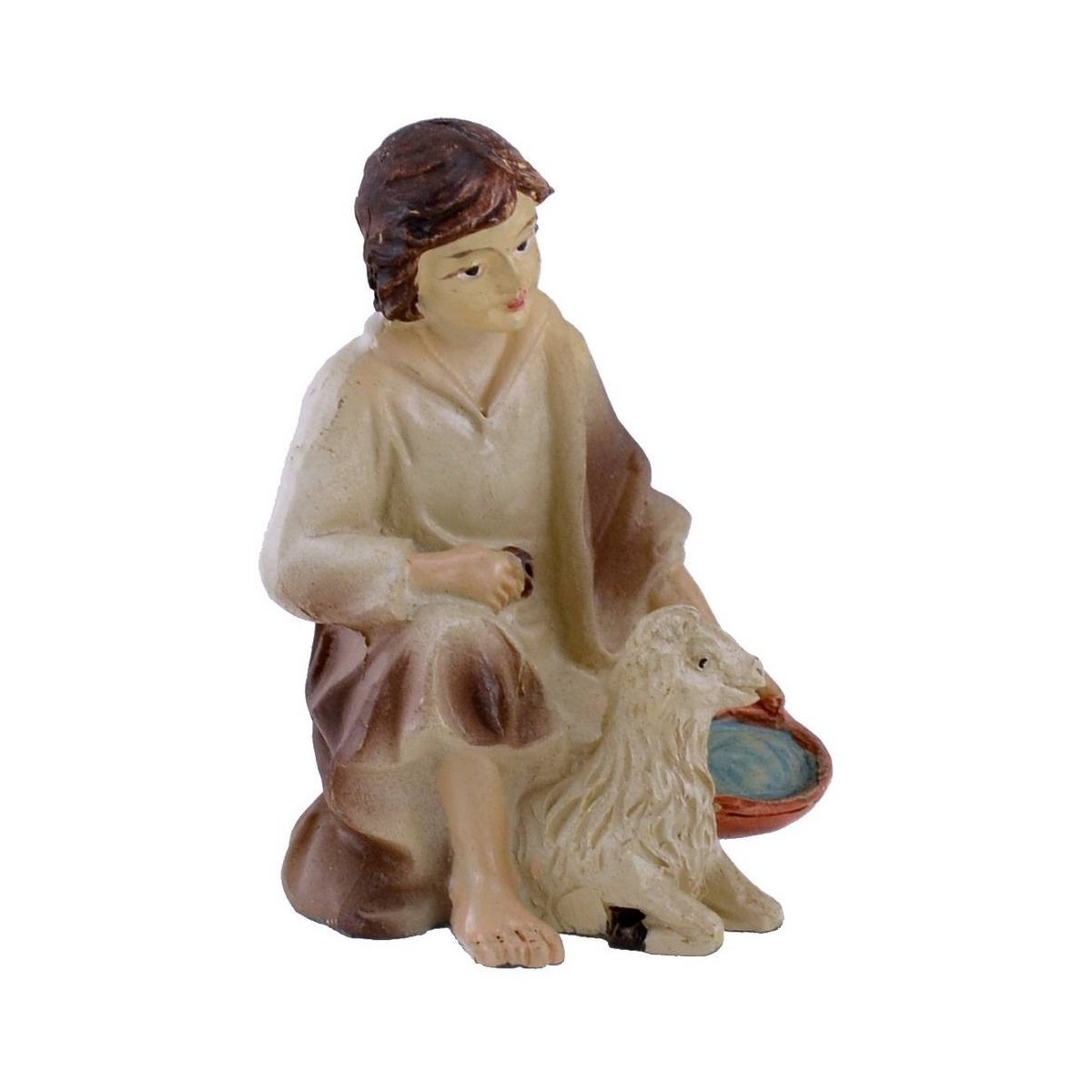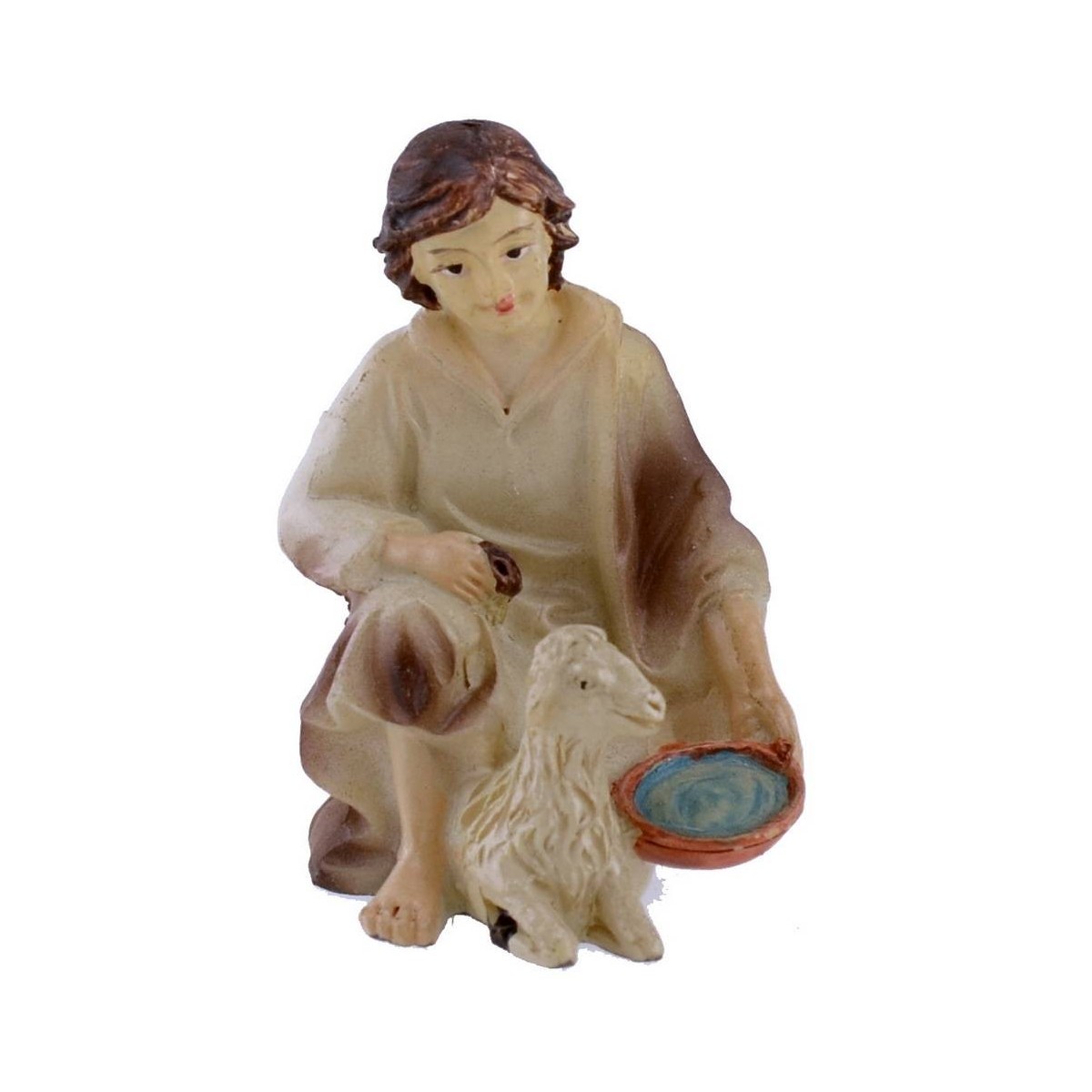 Pastore inginocchiato che abbevera la pecora serie 8 cm in resina