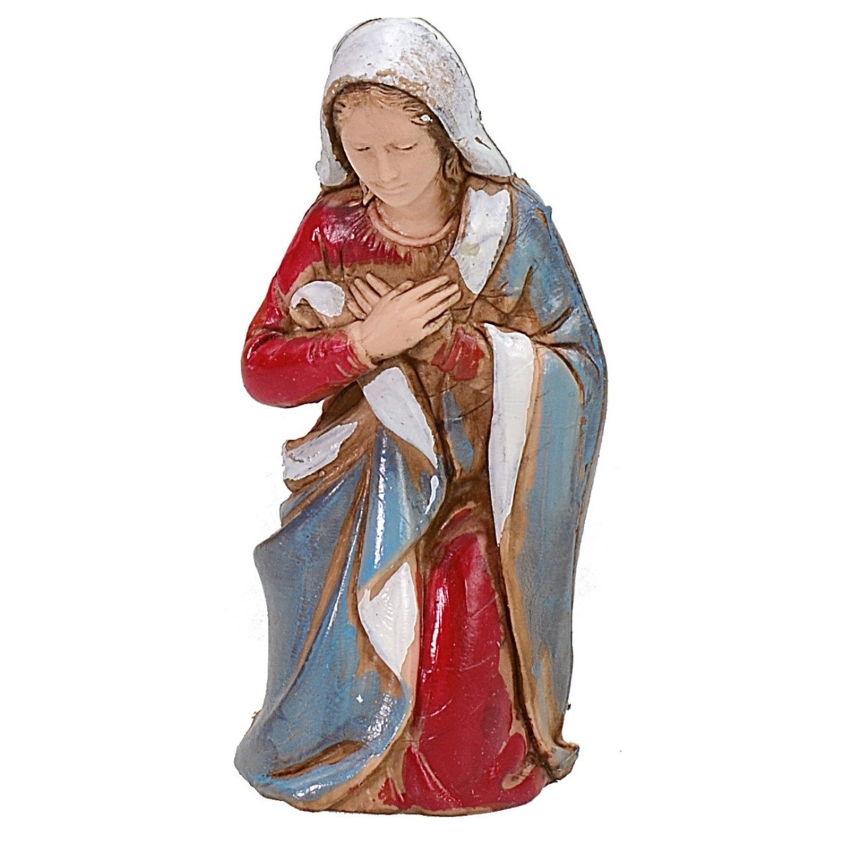 Natività composta da 3 soggetti: San Giuseppe e Maria inginocchiati, Gesù Bambino, asino e bue. Le statue appartengono alla serie Landi Moranduzzo 8 cm. Si precisa che le statuette essendo inginocchiate hanno un'altezza di 6,5 cm.