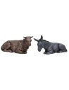 Natività composta da 6 soggetti: San Giuseppe e Maria inginocchiati, Gesù Bambino, Angelo, asino e bue. Le statue appartengono alla serie Landi Moranduzzo 8 cm.