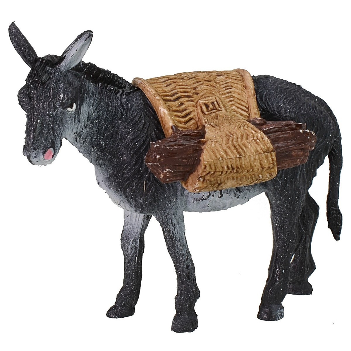 Asino in pvc consigliato per statue di altezza 8-10 cm, l'animale porta a spalle un carico di fascine di legna che può esser rimosso.