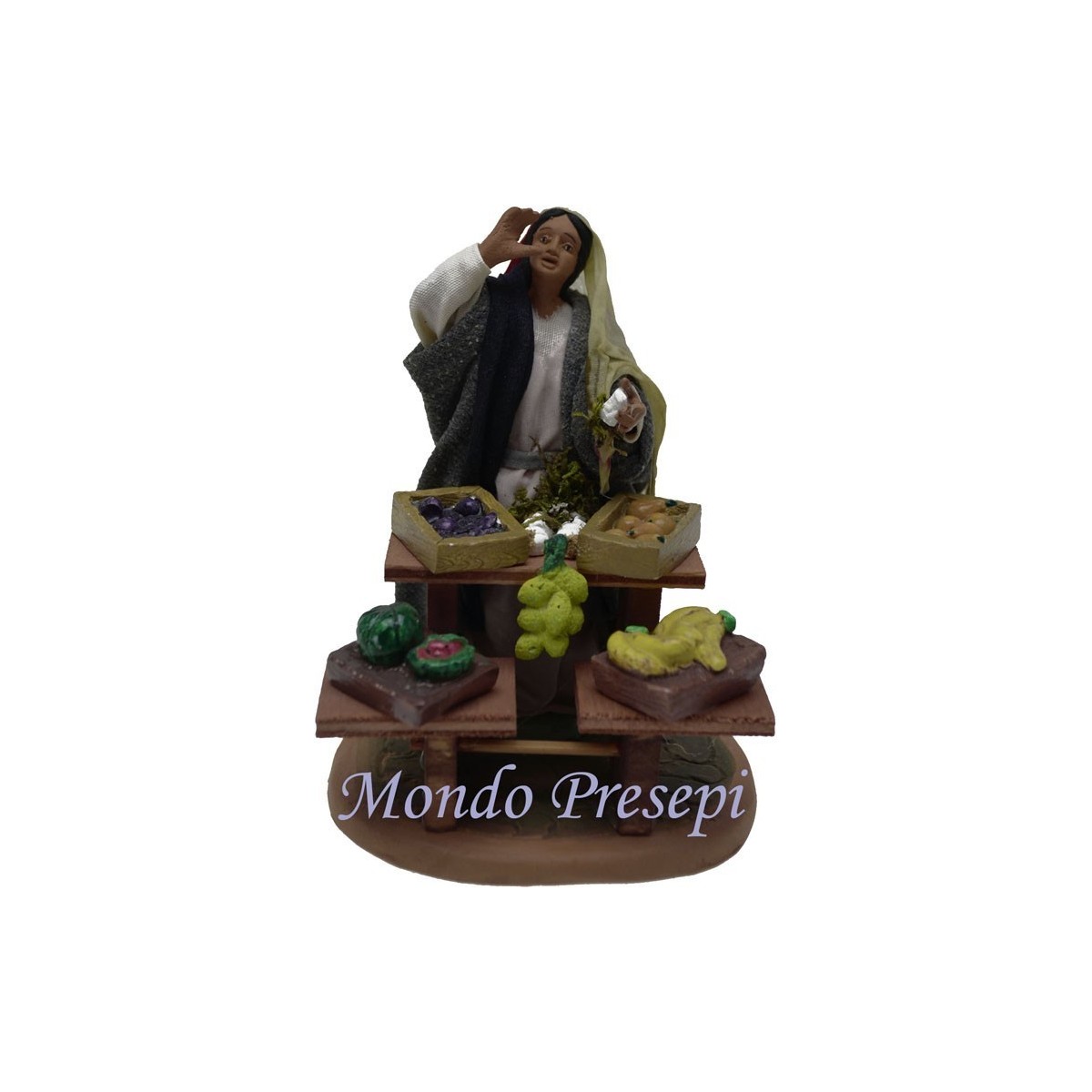 Greengrocer with a tour, terracotta statue, artistic and finished in every detail and dressed with fabric and hardened.