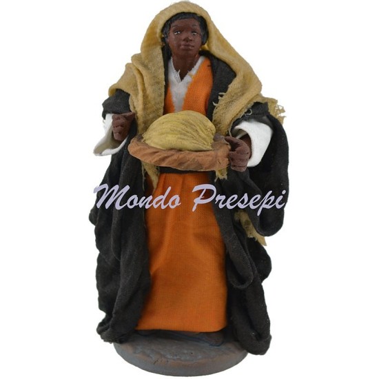 Woman brunette with basket of fruit, terracotta statue, artistic and finished in every detail and dressed with fabric and hardened.