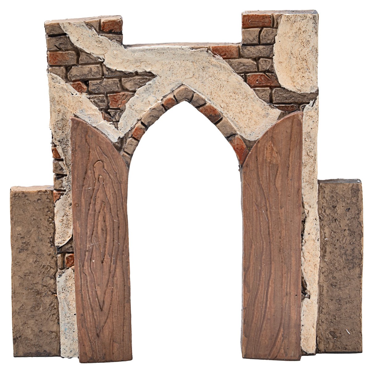 The set includes 3 subjects: the Madonna seated on the donkey, Saint Joseph with a staff, and the scenography of the city gate.