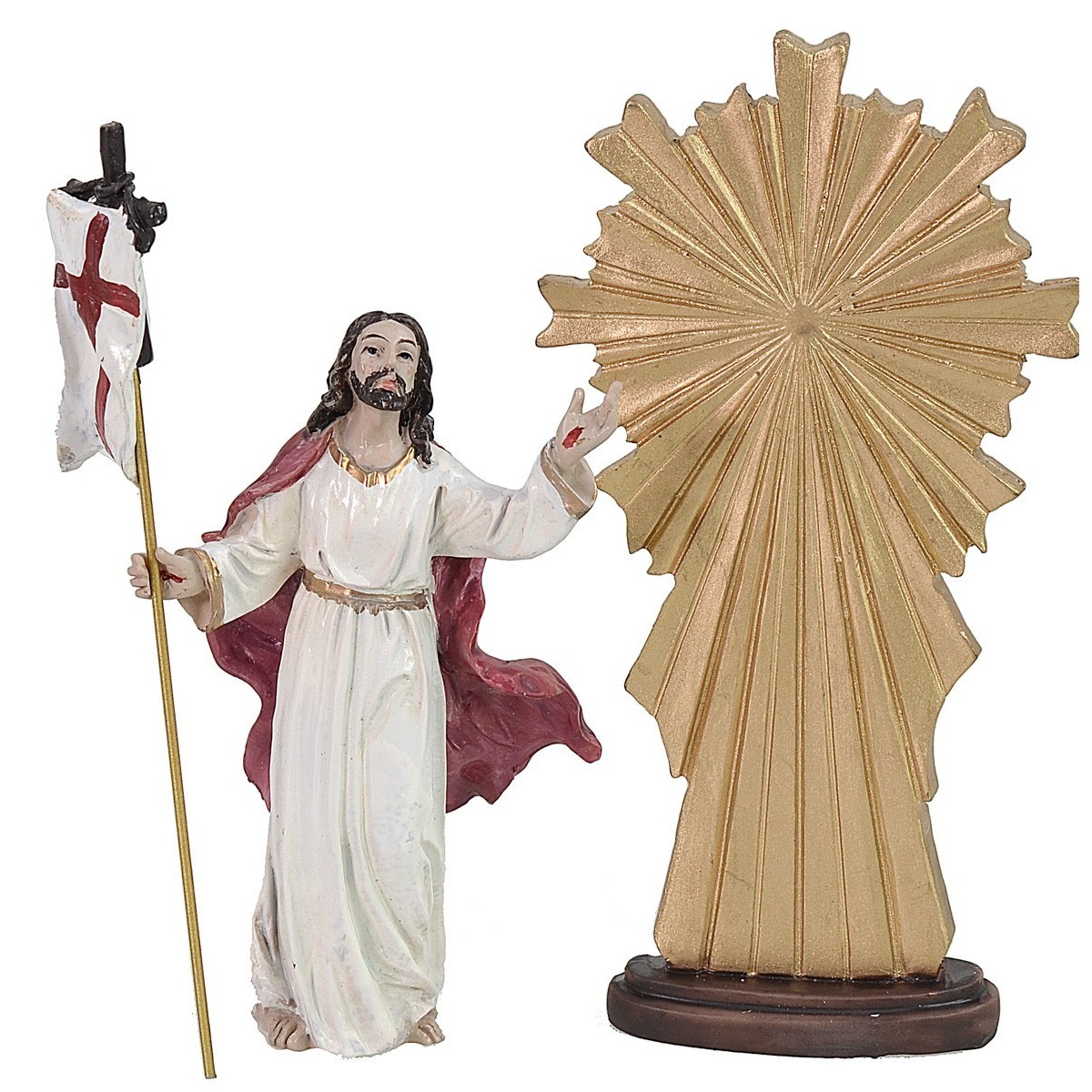 Paschal statue for the representation of the apparition of the risen Christ to the disciples. The statue is made entirely of resin and consists of two pieces. The product is ideal for creating Easter compositions such as Dioramas and Nativity scenes. The statues of the same series have expressive faces and well finished in detail.