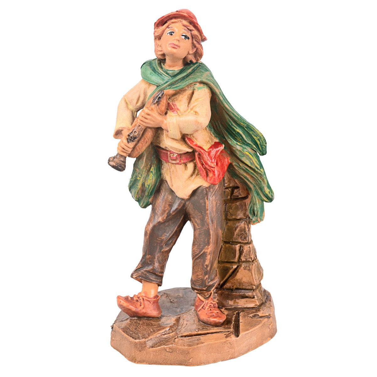 Pifferaio, series 9.5 cm Fontanini, painted by hand. The statues of the traditional Fontanini presepe have expressive and well-refinished faces in the details.