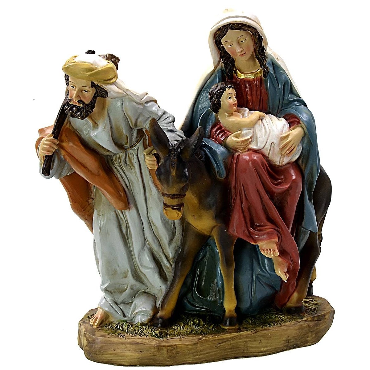 Flight into Egypt in resin, height 16 cm. Statues representing the Life of Jesus.