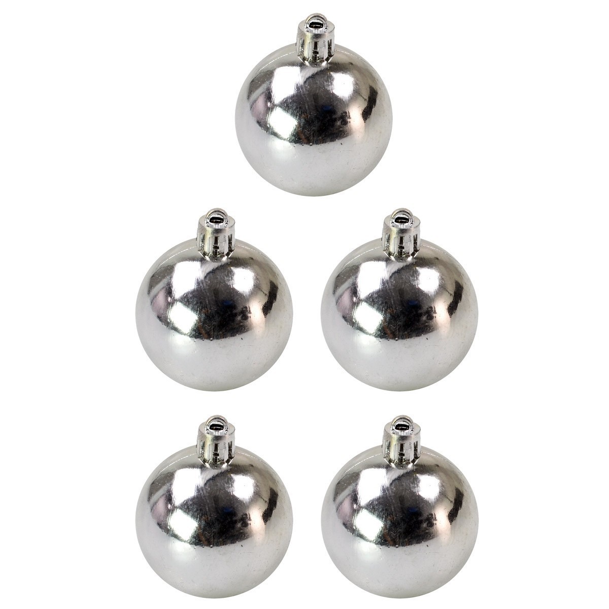 Set consisting of 5 metallic silver balls diameter 4 cm for Christmas tree. In our online shop, balls of the same model are available in other sizes.