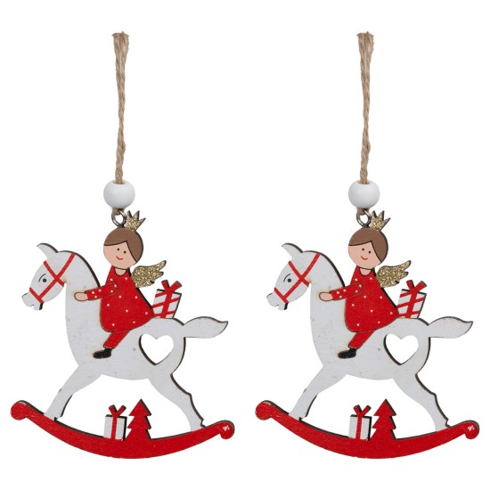 Set of two white wooden horses ideal for decorating the Christmas tree.